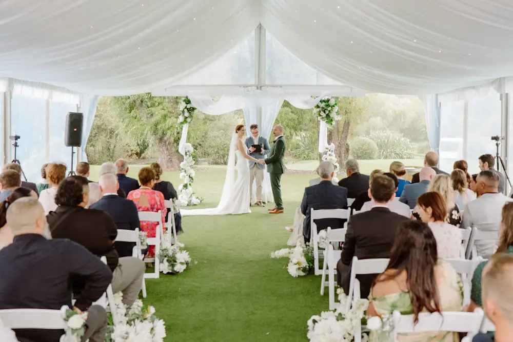 Either next to the vines in the marquee or inside the venue building you and your guests can stay out of the rain or the heat of the sun for the all-important ceremony.