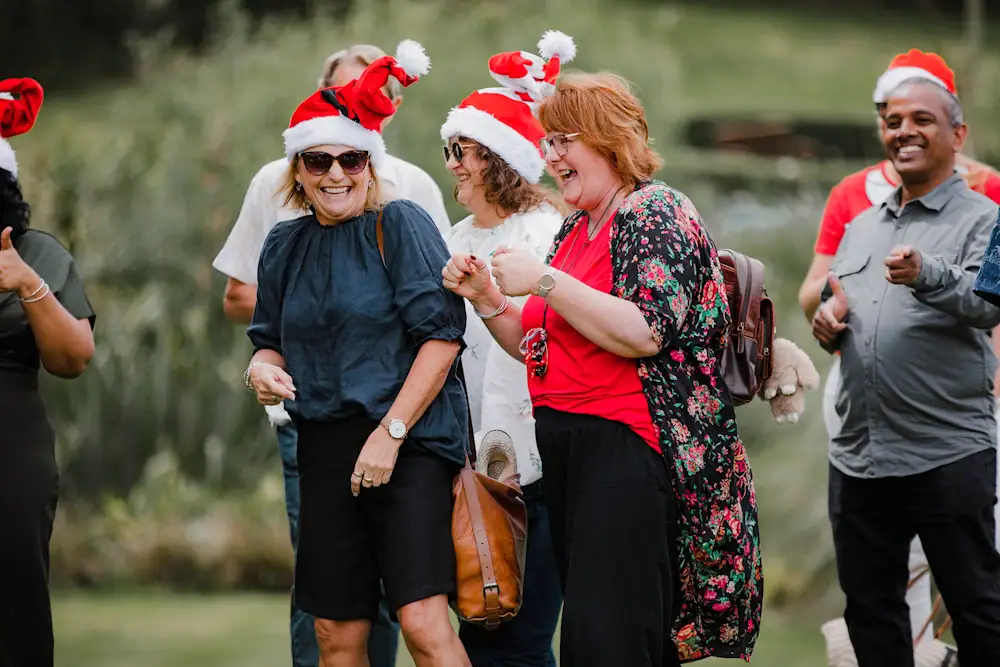 End-of-year celebrations that embrace the Christmas spirit with table decorations, blow-up Santas and manageable budgets.