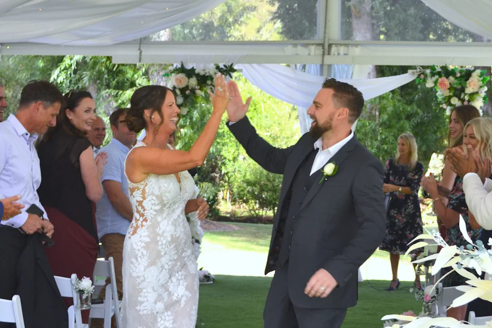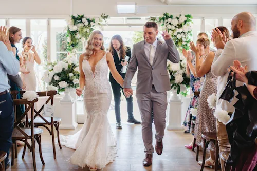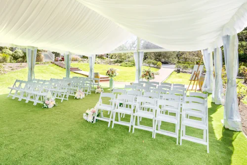 Either next to the vines in the marquee or inside the venue building you and your guests can stay out of the rain or the heat of the sun for the all-important ceremony.