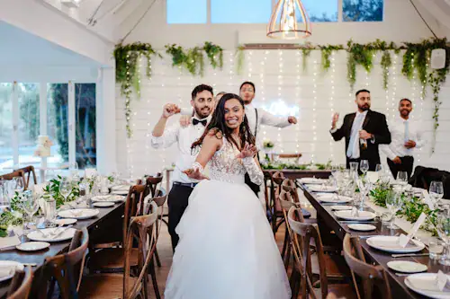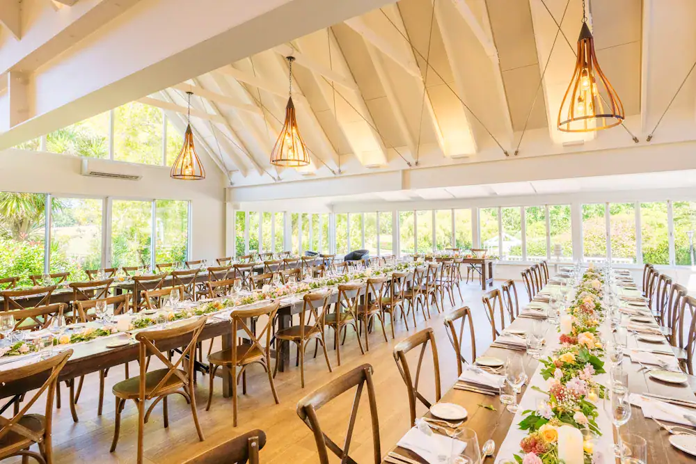 A 270-degree panorama of lake, vines and gardens — the Winery Room surrounds you with natural beauty, whatever the season, adding the wow factor to your day with its fresh, modern interior. Couples and guests alike rave about how the 2023 renovations have transformed the space — lighter, brighter and more spacious than ever. From the head table, take in sweeping views of the lake, the stripped-back rotunda and the paved ceremony terrace. As evening falls, the back-lit onyx bar brings a warm glow that perfectly sets the tone for the celebration ahead.